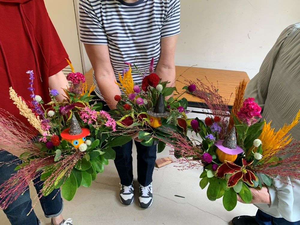 ペンタスの花がら摘みやアンゲロニアの切り戻し作業中。