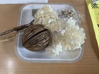 10月21日から開催のフルルガーデン倶楽部展(通称フルル展)で販売する雑貨作りなど準備をはじめました。その様子を一部ご紹介します。
