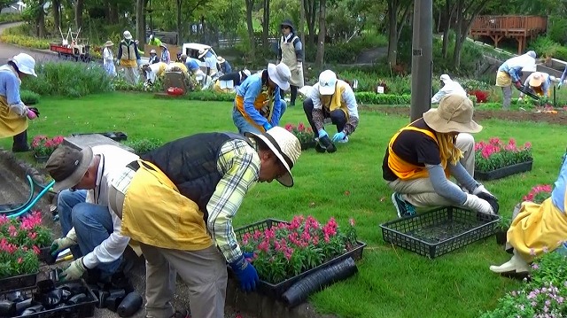 5日は看護学校の花壇の植え替えでした。