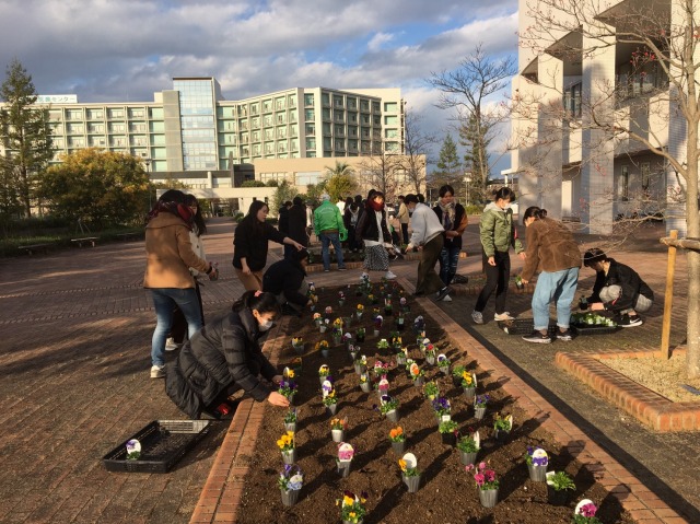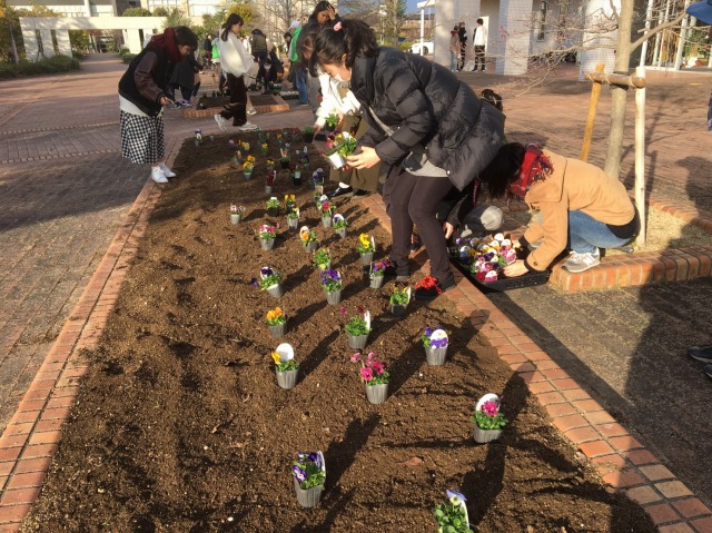 一生懸命にデザインして植える学生さんや興味なさそうな学生さん達。
