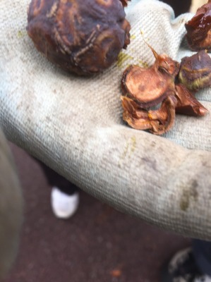今日7日は、全体作業でチャーリップの球根を小径両脇に植えて行きましたが、メタセコイアの葉っぱが降り注いでいるので、除きながらの作業です。