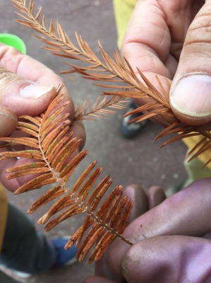 休憩時間、メタセコイアの葉っぱと落羽松の葉っぱの違いのクイズやメタセコイアの葉は対生、落羽松は互生ということも教わりました。やはりフルルの方は、色々と詳しい方ばかりでした。