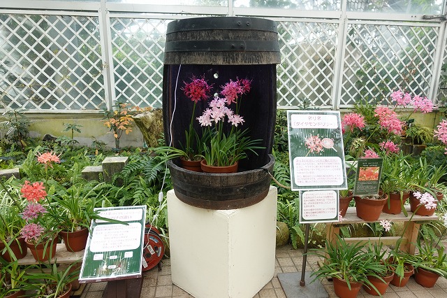 リーフグループはネリネ展の最中の温室でベゴニアの植えたし作業。ネリネは暖かな色で、 ラケナリア・ピグマエアもピンクの花でした。