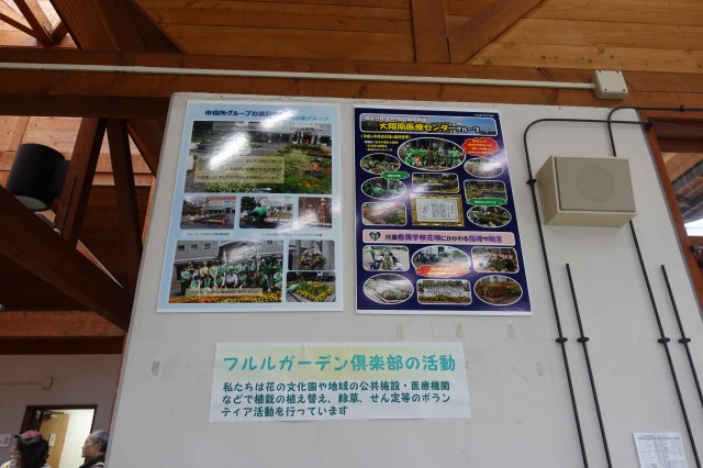 休憩室には、フルルガーデン倶楽部展用に作成の各グループの紹介パネルが、12月3日から貼りだされています。
