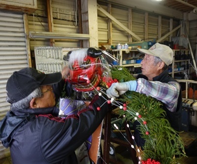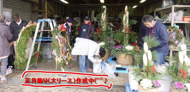 お正月飾り大リース作成の特別活動がありました。
