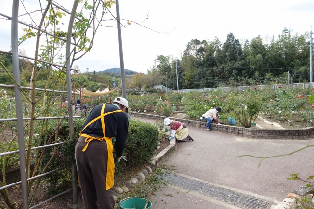 フィールドグループはいつものバラ園で除草中。秋薔薇がきれいです…