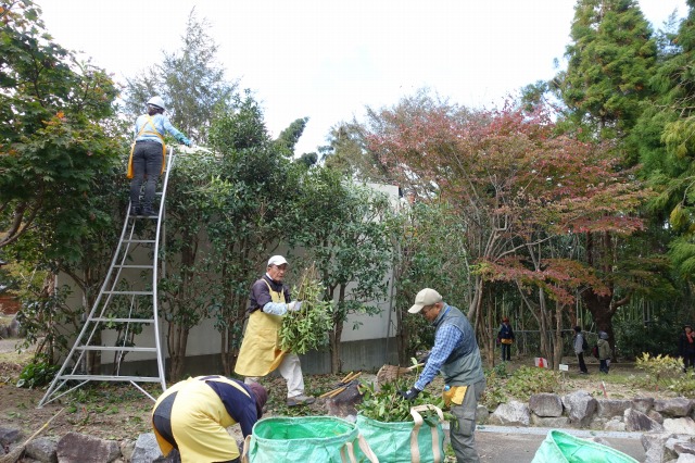紅葉の美しい11月はグリーングループの季節です!? ボタン園のキンモクセイの剪定中。 もみじ谷のライトアップも楽しみ。