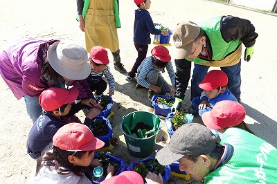 不安で止まりそうになる手も、手順を説明するとまた頑張り、無事に植え付け完成。