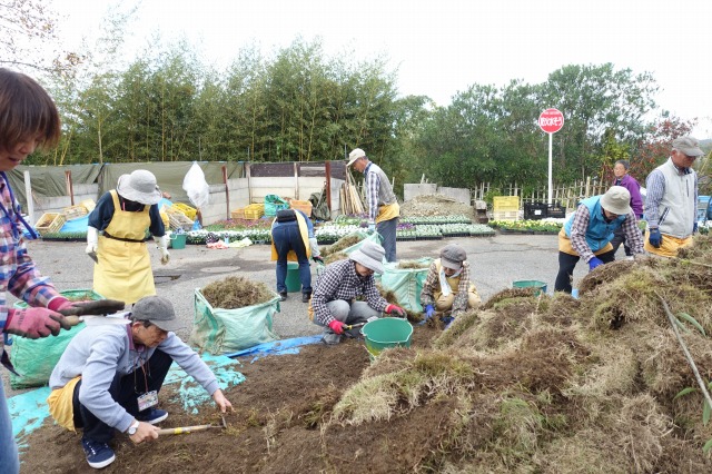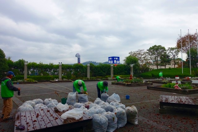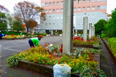 9時半から2時間の作業で出たごみは、28袋でした。12名参加で終了。植え付けとハンギングバスケット作成は、来週11月26日(月)9時からです。