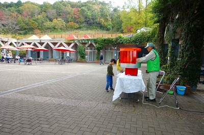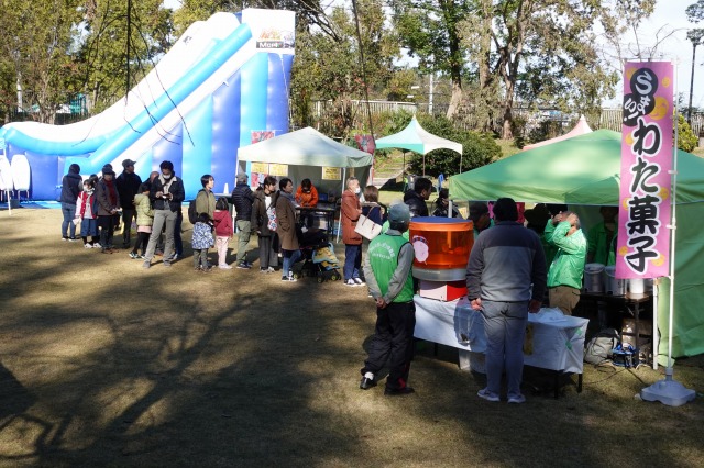 芝生広場で100円のわた菓子と、無料の栗ぜんぜい(各日100杯限定)の振る舞いです。栗ぜんざいは10時半から30分で売り切れ。