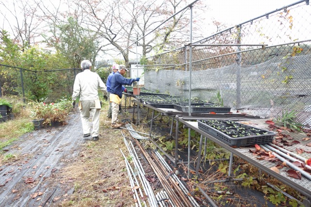 11月6日には、地域活動の特別グループのビオラのポット上げを、一般活動各グループから2~3人参加で行いました。