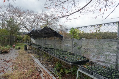 ビオラ置き場の、棚作り・防寒ネットはり作業です。(コミュニティーガーデン裏)