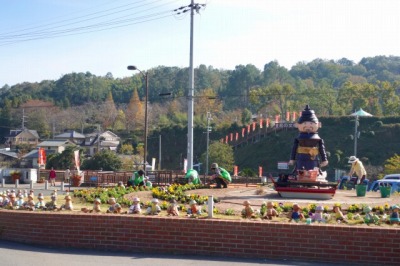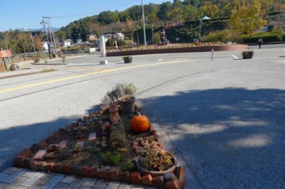 花壇の近くの三角形・・ここにも小さなテラコッタドール等が飾られています。