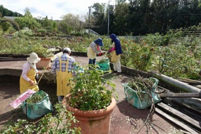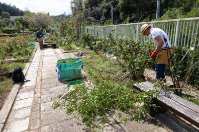 つるバラの片付けのため、大勢の方が午後も頑張りました。