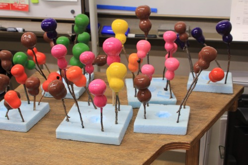 朝会の行われている集会室の外の「根こそ木」(!?)状況