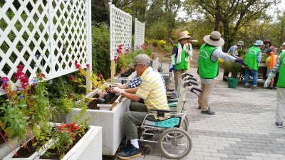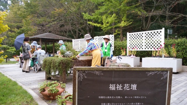 *車いすに乗ったままでも園芸を楽しめる福祉花壇は、
