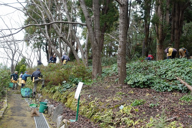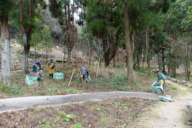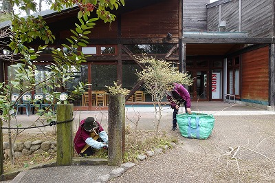 カルチャーG エビネ園とふるさとの花園の杉葉掃除