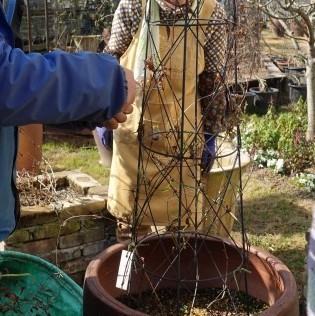 まず井之本先生に、剪定とツルの誘引の仕方をお聞きしてから。