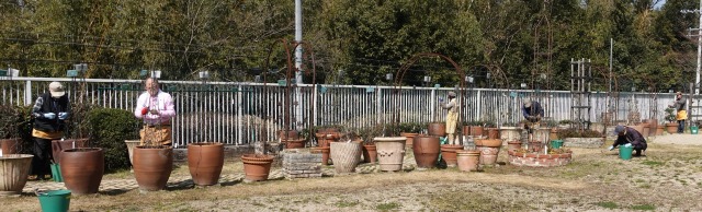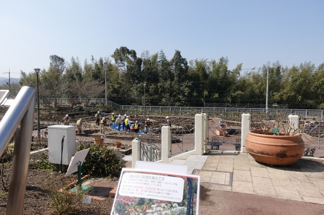 クレマチス園の隣のバラ園も冬の管理作業中。バラとクレマチスの「美しき競演」はまだ先です。以前の開花写真はこちらへ→ 5月4日、 6月6日、 6月13日)開花を楽しみに作業しました(^^♪(byM.N.)