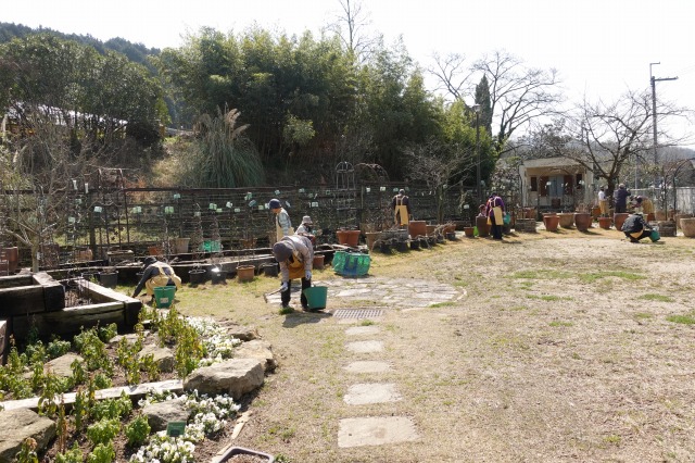 全体作業で、花の苗を植え付けたり、除草をして美しい植物園になってきました。(byJ.Kawai)