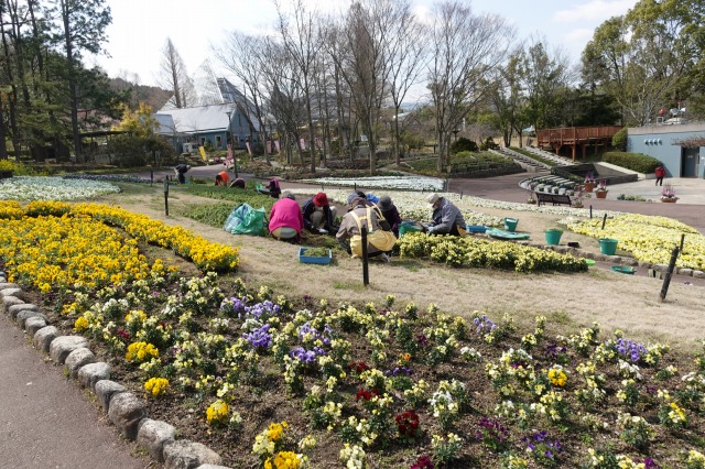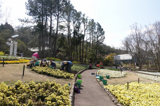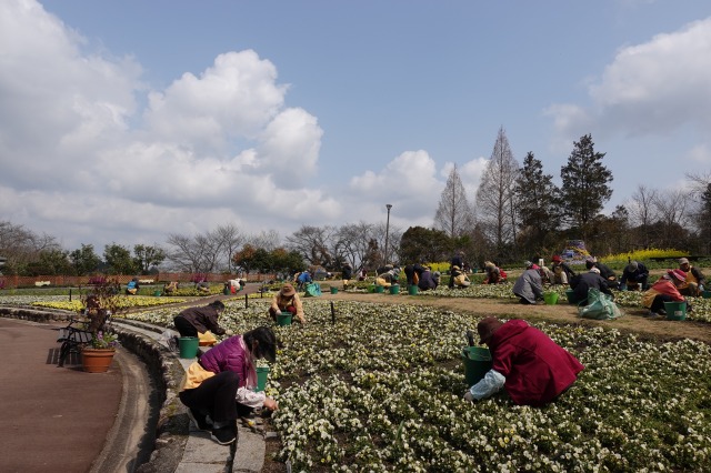 春めいてきました♪花の文化園「フラワードレスの装飾花壇」も楽しみです。4月7日(日)午後に抜き取りイベントもあるそうですよ。