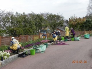 3月も半ばの本日は全体活動日。土曜日なので、人数は少ないですが、装飾花壇のメンテナンスです。春爛漫までもうちょっと(^^♪