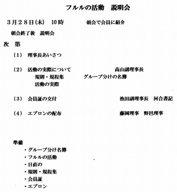 新会員の17期生を迎えて、朝会後説明会を行いました。新年度の活動は4月2日(火)から始まります。会員証の切り替えも開始されました。