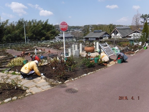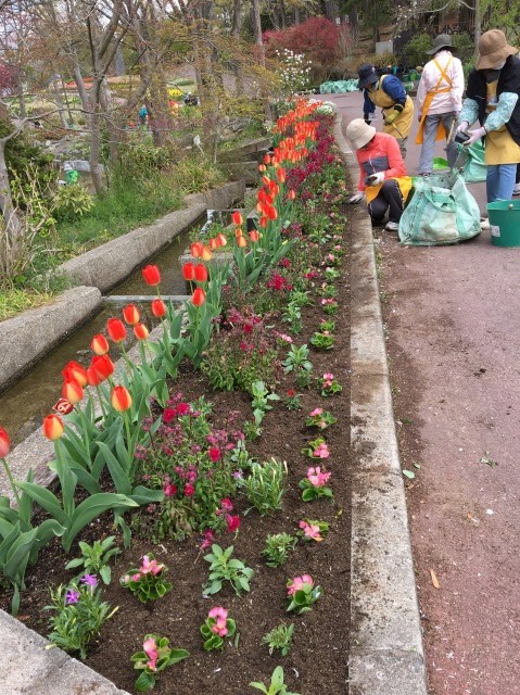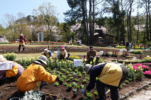 4月8日(月)花の文化園休園日です。本日は 装飾花壇植え替え で、午後 理事会(新旧)新グループリーダー合同会議もありましたが、短時間で切り上げ、一日作業でした。 (byM.N.)