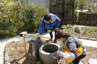 カルチャーグループ:盆梅植え替え(バックヤード)