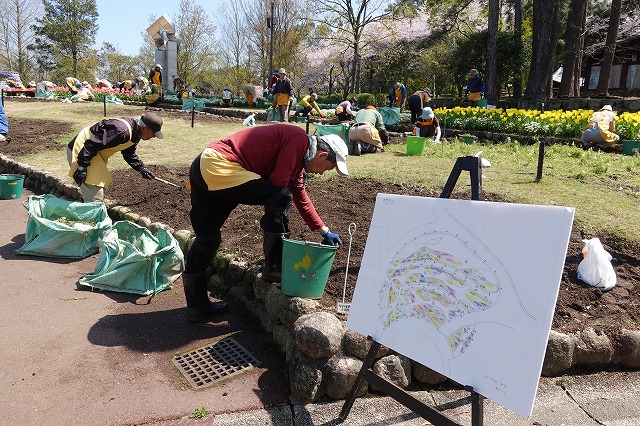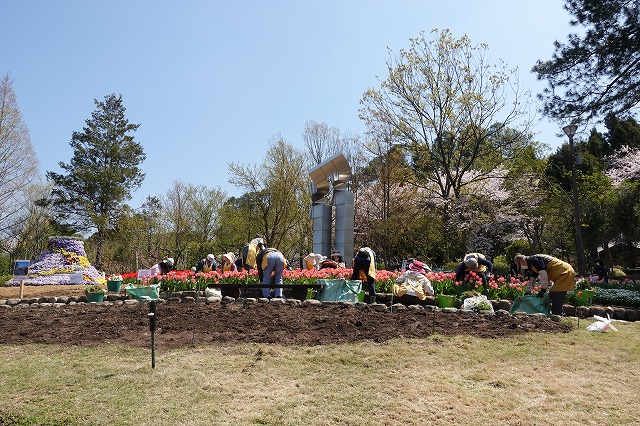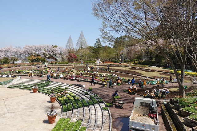 花の文化園装飾花壇は、今年度は、4月8日のほか、6月3日、9月2日、11月25日の月曜日に植え替えます。ご予定ください。