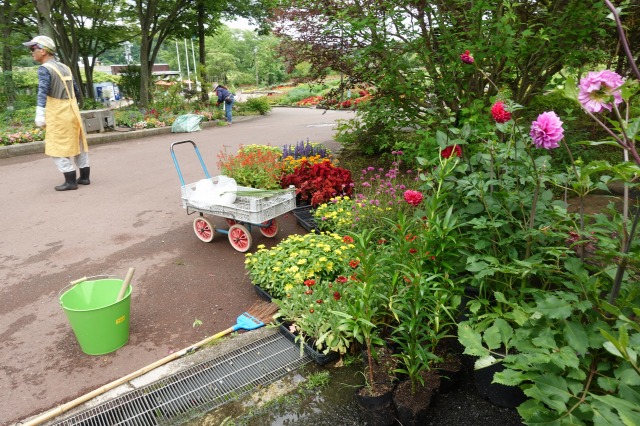 花の回廊のユリを堀上、夏の花に植え替えです。