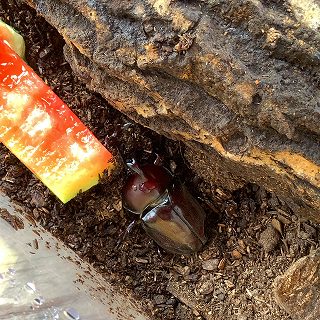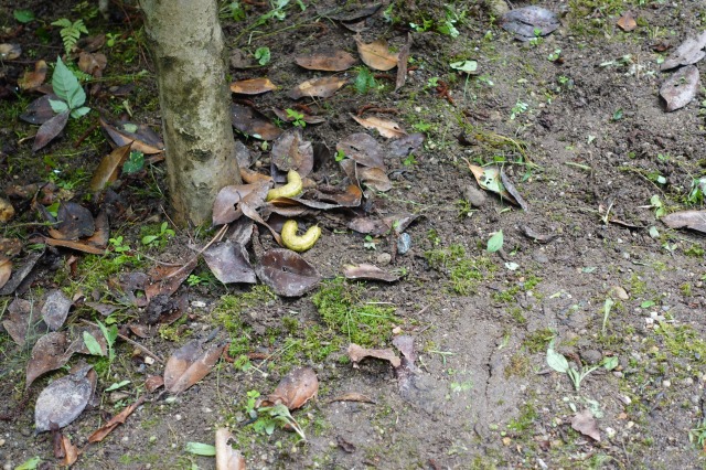 ツバキ園のメンテナンス。椿の根もとに大きな幼虫が。スズメガの仲間とか・・