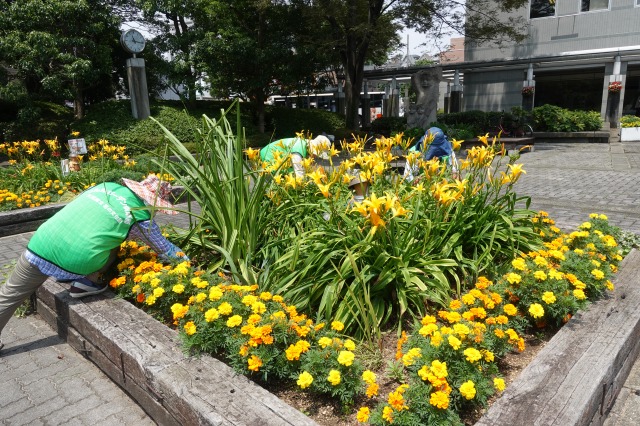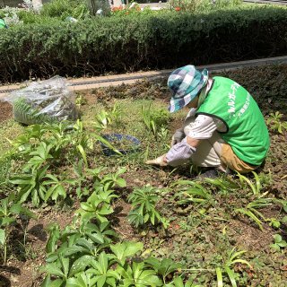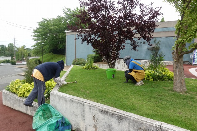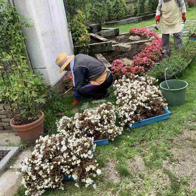 本日は、センター棟前の花壇の抜き取りと植え付け作業・・抜き取り終わって、休憩中~・・これからたくさんの苗を植えるんですね‥暑くなりました。夏の活動は休憩をしっかり入れてくださいね♪