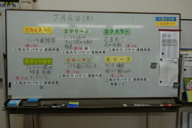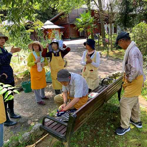 養成講座生5名の他に、職場体験の中学生2名も受け入れて、挨拶の後クレマチス園のメンテナンスです。今日はメンバーの参加数が少なかったようです。