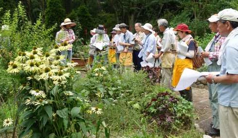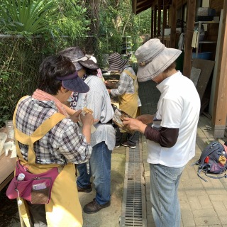本日は今年度初めての、ボランティア養成講座(花の文化園主催)の講座生との共同作業がありました。午前中は6班に分かれて、各グループの活動に参加。午後は、カルチャーグループとアジサイ園で、アジサイ剪定の実技講習でした。