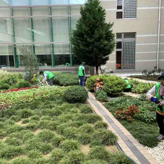 エントランス外の花壇のカルミアなどのメンテナンス。