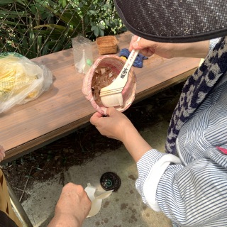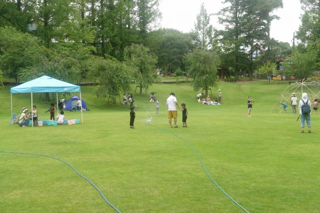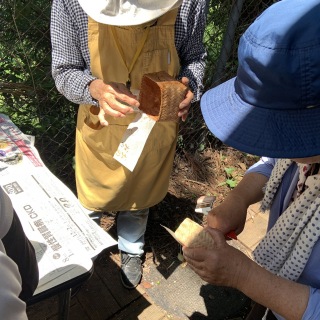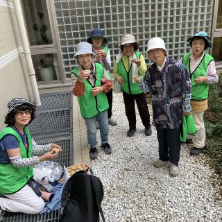 本日の活動は、ゆずりあい駐車場付近階段での全体作業のほか、DIYグループメンバーを中心に、芝生広場で水てっぽう作りがあったので、いつもより参加者多め(^^♪