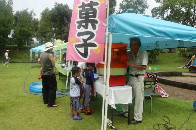 綿菓子機のメンテナンスは怠りません。下は28日の綿菓子出店風景。