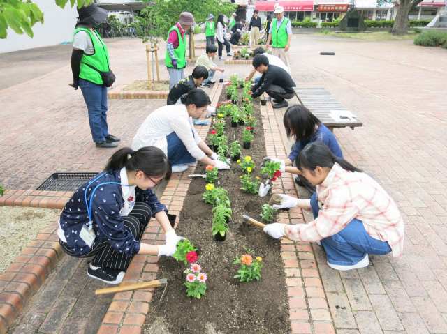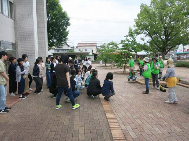 植え方、手入れの仕方を説明し指導しながら学生さんたちの手で苗が植えられていきました。